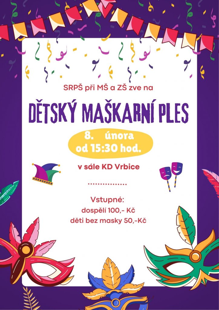 8.2. v neděli : Maškarní ples pro děti od 15.30h v Kulturním domě